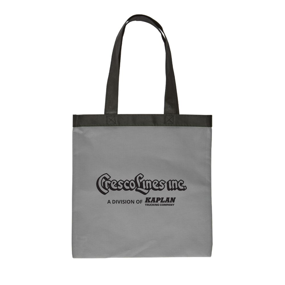 Basic 13” x 14” non-woven polypropylene tote bag with 22" black handles and top trim.